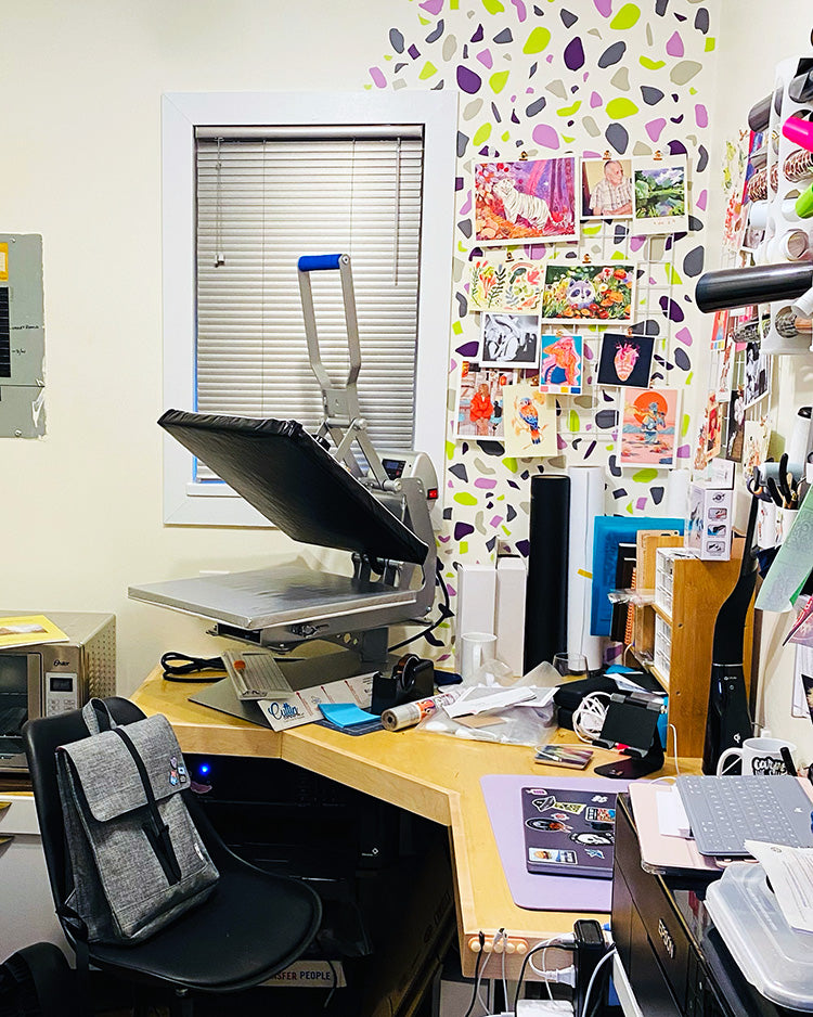Clothing I use is ethically and sustainably made in Ontario, Canada before I print each item by hand in my studio in Langley, British Columbia, Canada. 🇨🇦 I use a professional-grade Stahl's Hotronix, Epson printers, and Canadian-sourced inks and supplies.